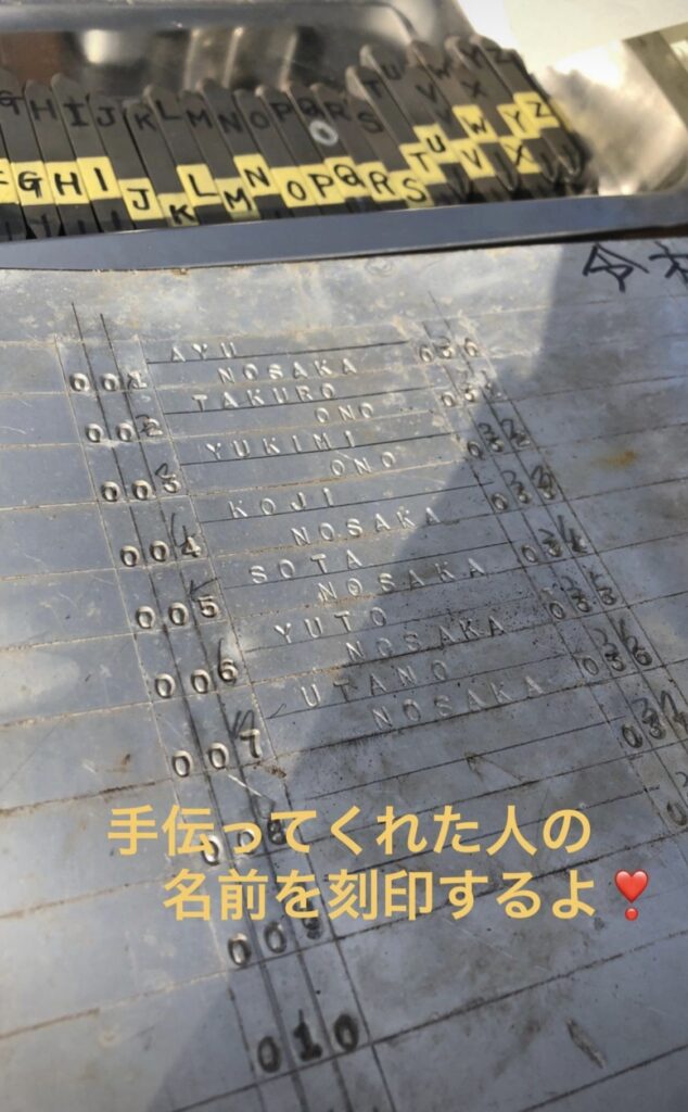 手伝ってくれた人の名前を刻印していきました。
