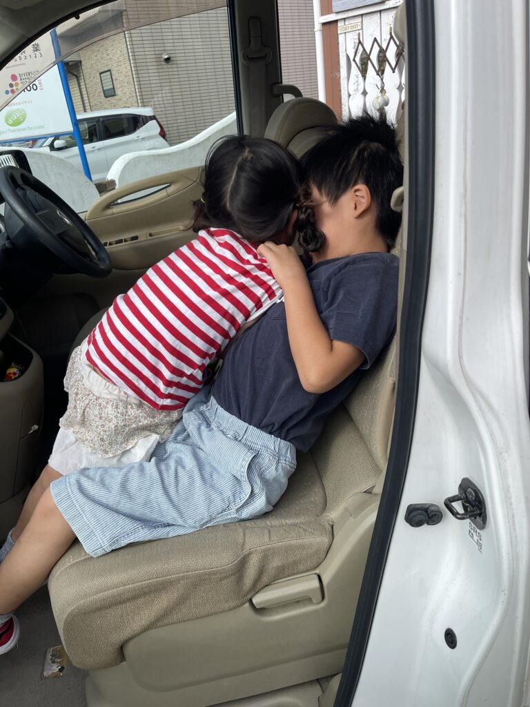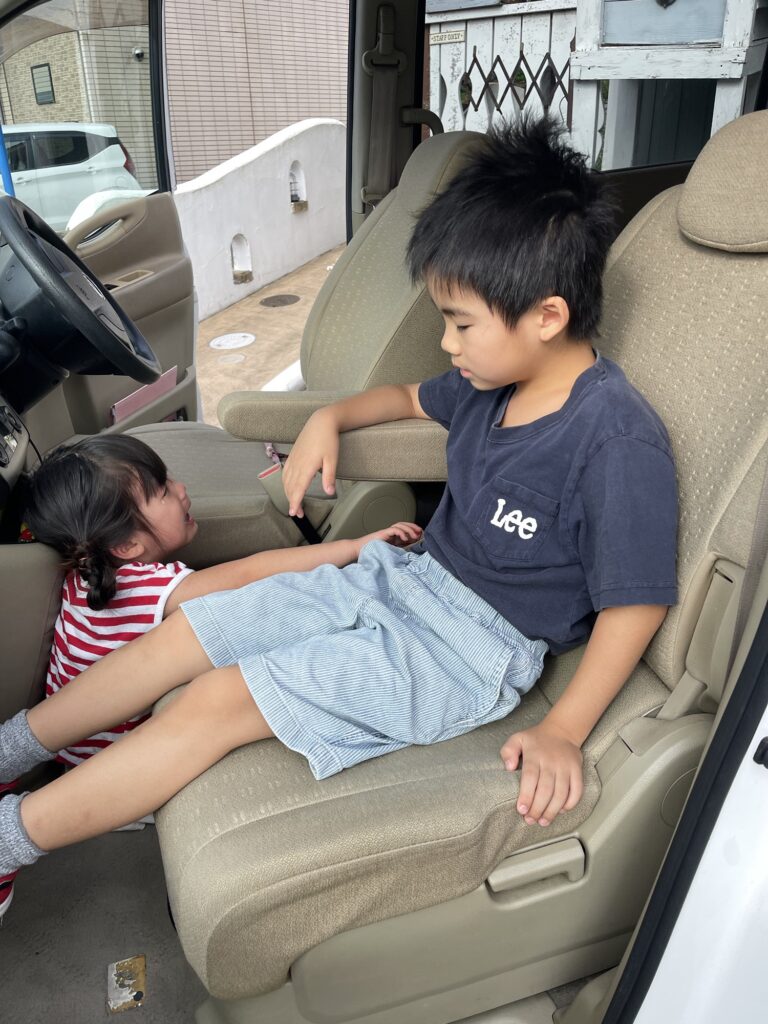 車の座席をめぐって喧嘩中。うーちゃんも最近強情で負けてません。