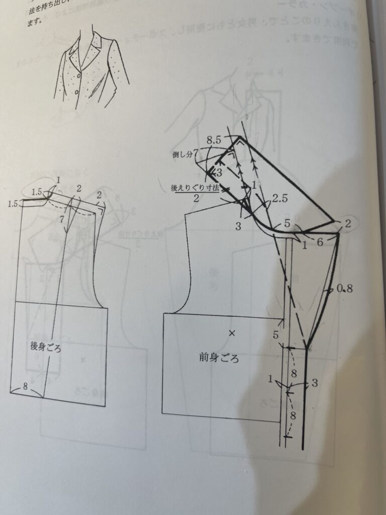 いろんな襟の上着と、スカートかパンツ両方の製図が出ます。何が出るかはわからないので、大変!