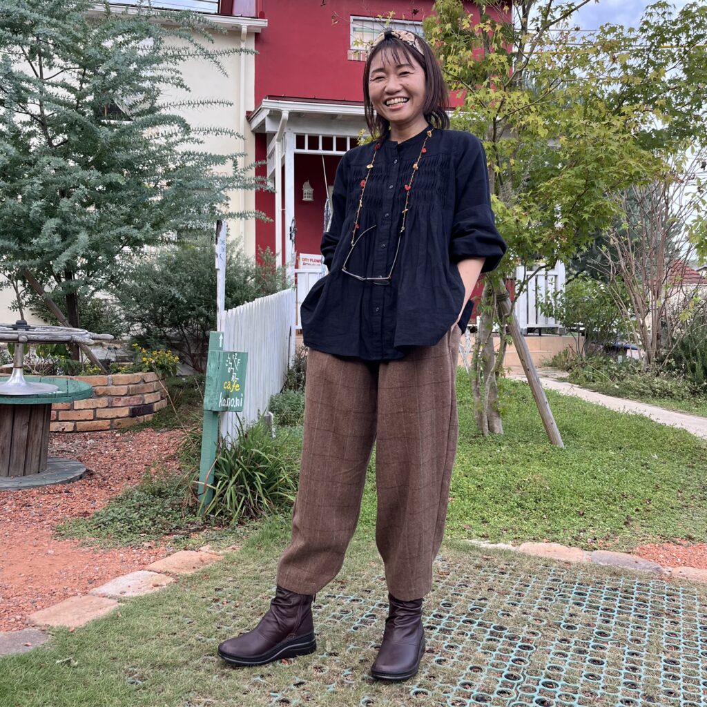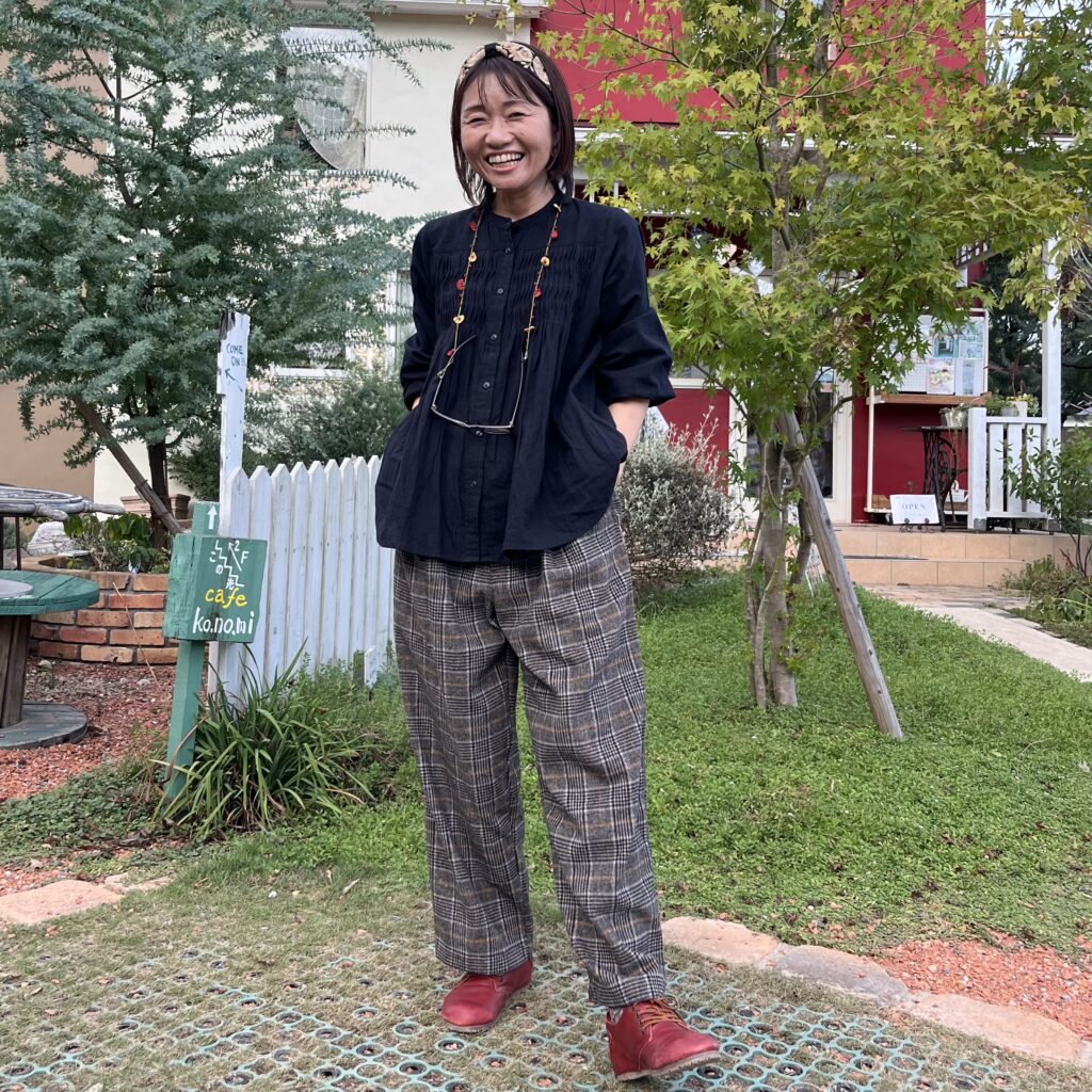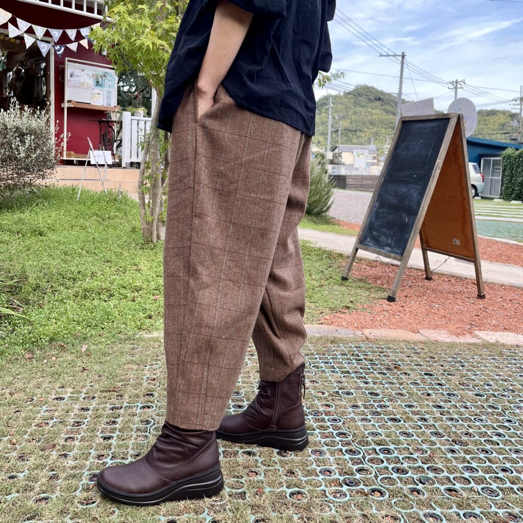 ウールライクな千鳥パンツ。あ!これサイドとバックのポケット口にどちらもパイピングがしてあってオシャレやったのに撮るの忘れてるー💦