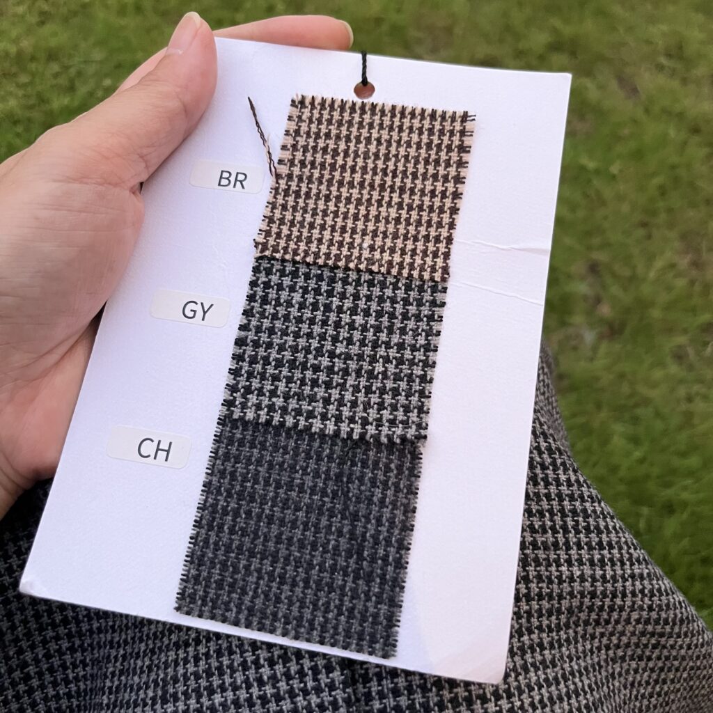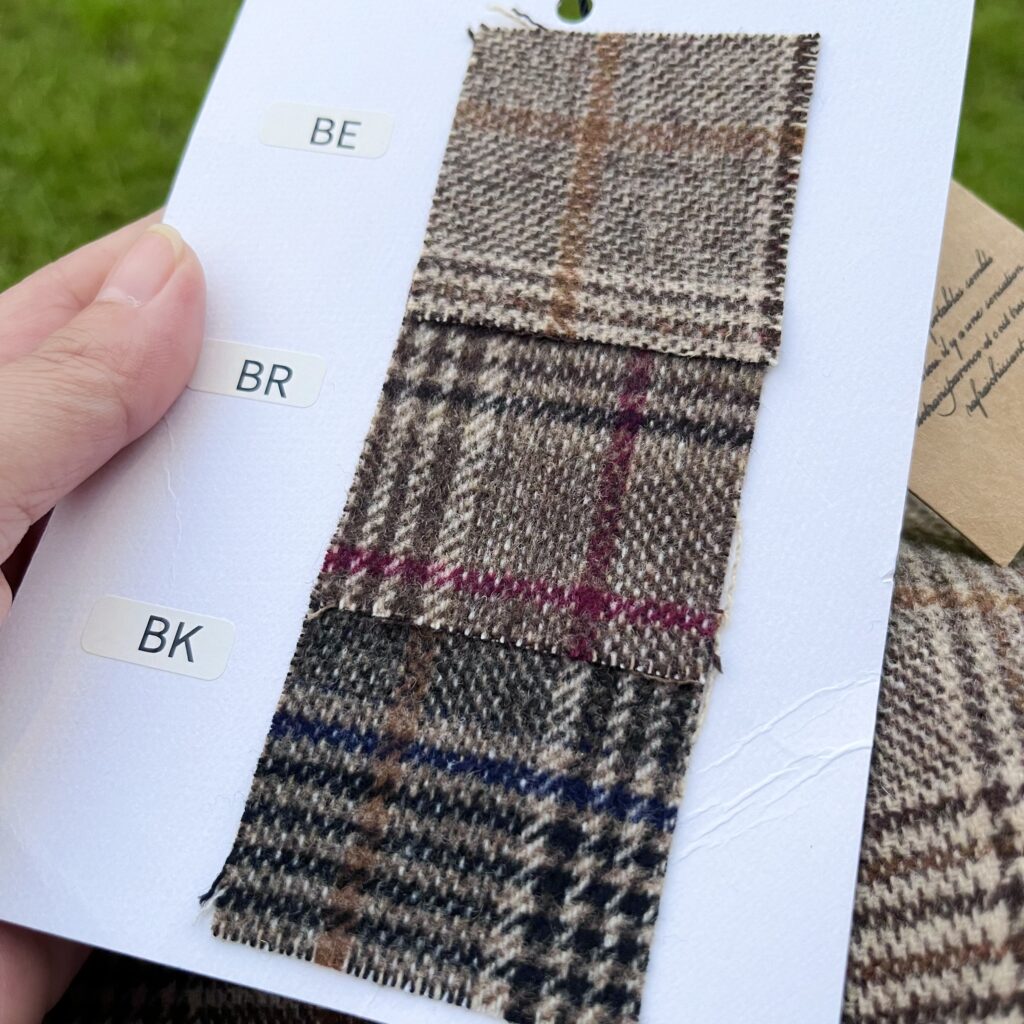 こちらはヘリンボーンにチェックを重ねてるオシャレな生地。形はちょっとシュッとしてます。