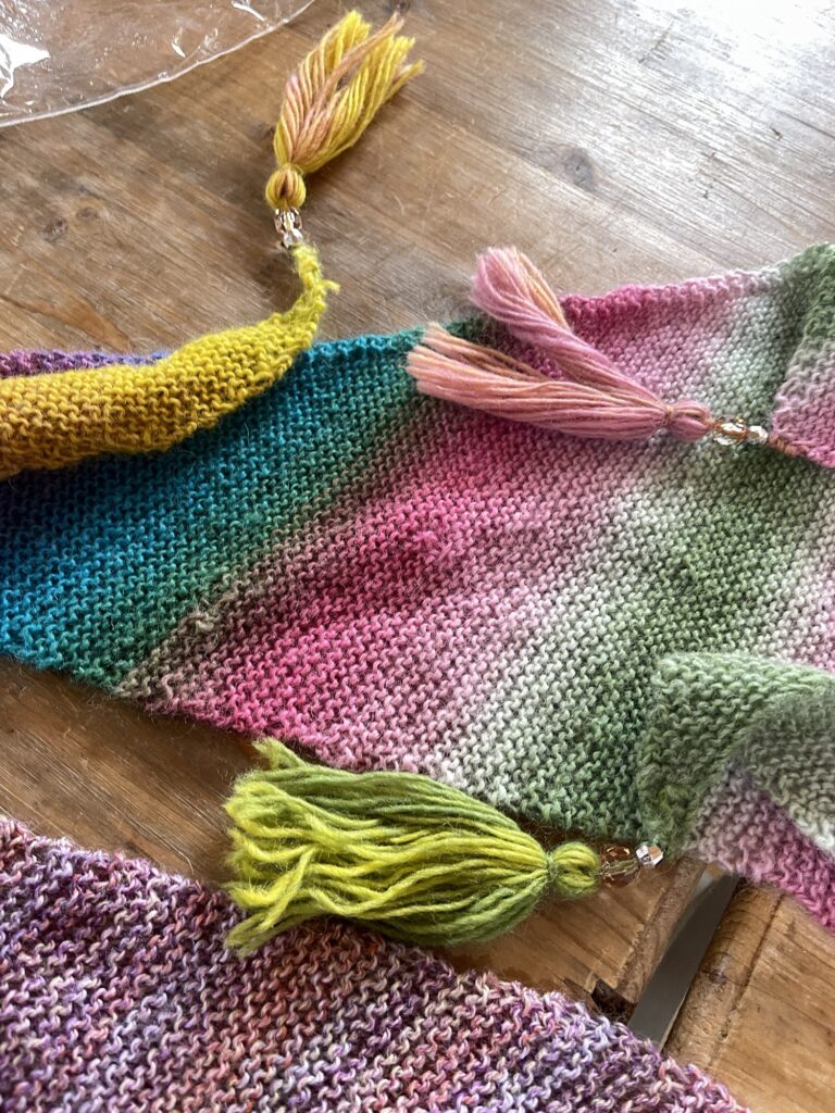 カイトストールは、フリンジを一本づつ色を変えたのがとっても素敵。