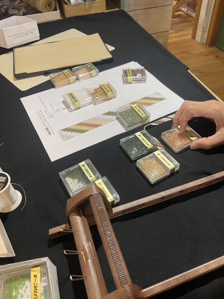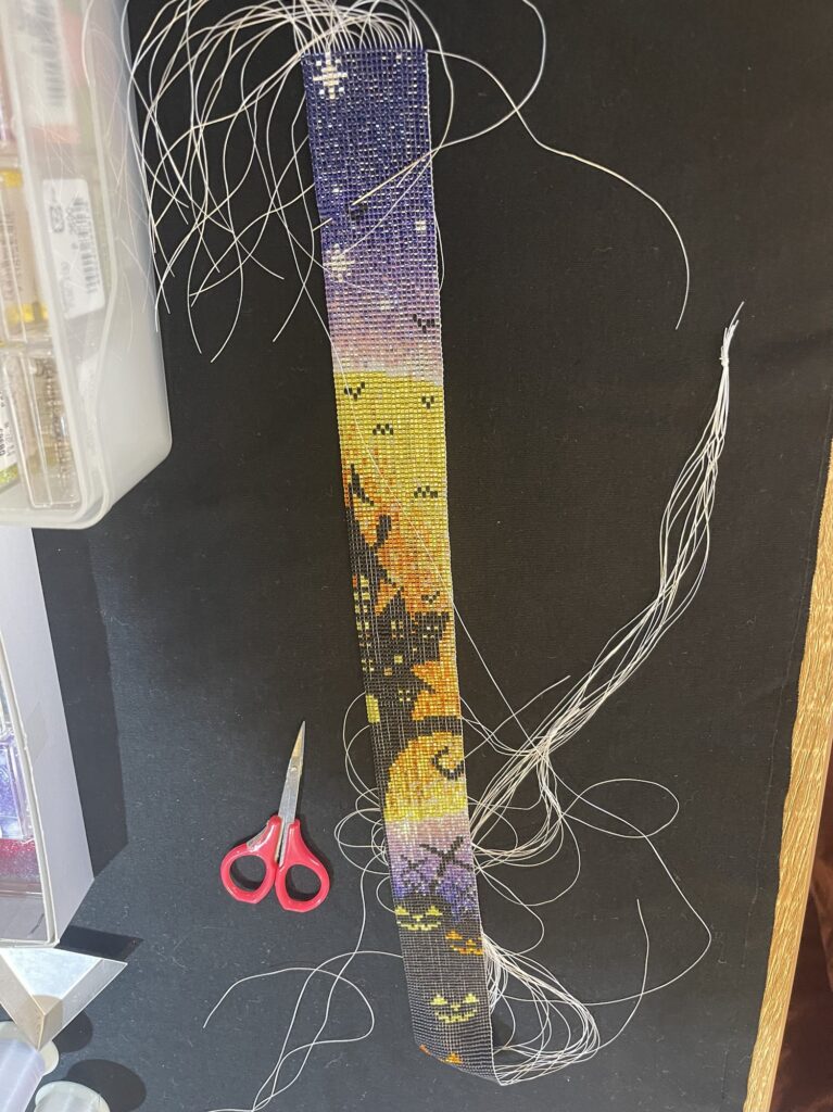 今日はブラーノザッパでぴよこ先生のビーズ織教室がありました。先生はハロウィンのタペストリーを作っておられました。素敵〜⭐️