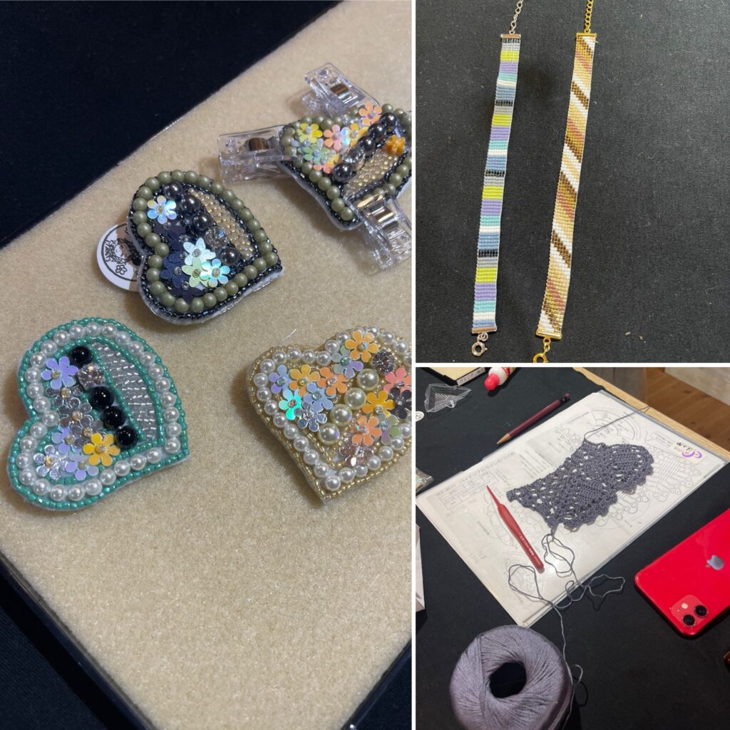 明日は編み編みクラブとビーズ教室があります