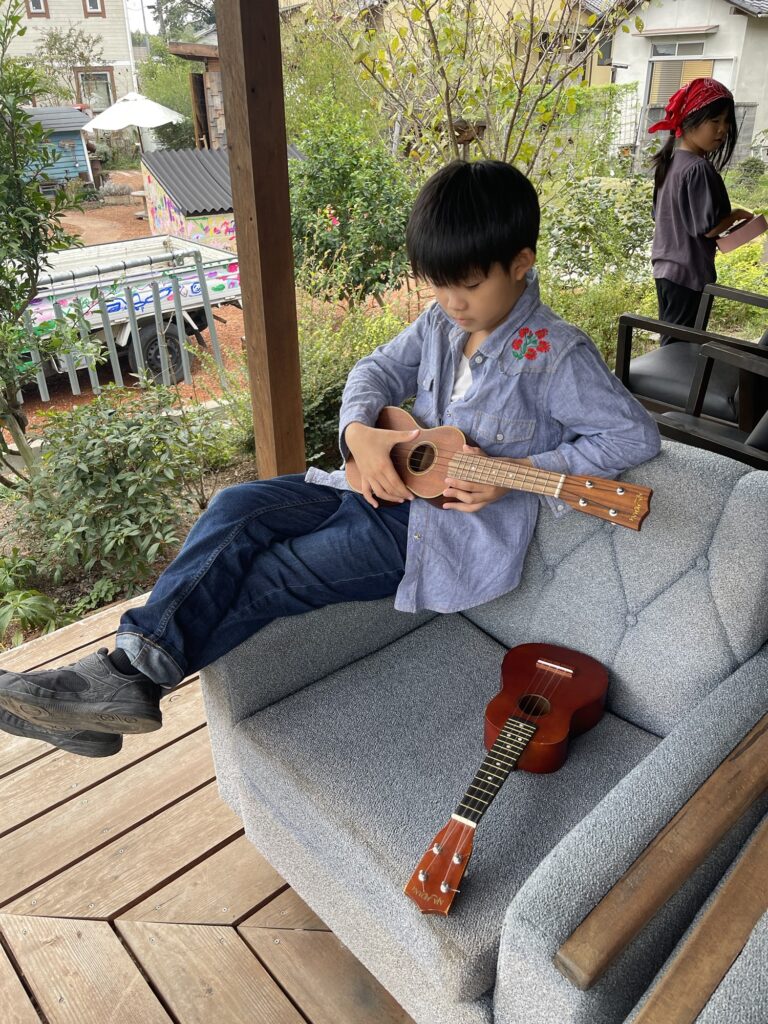 ウクレレをつまびくそうた、なんだかカッコいい!
