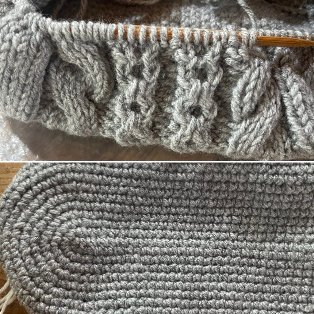 縄編みのバッグ。底もとっても丁寧に編まれてます。