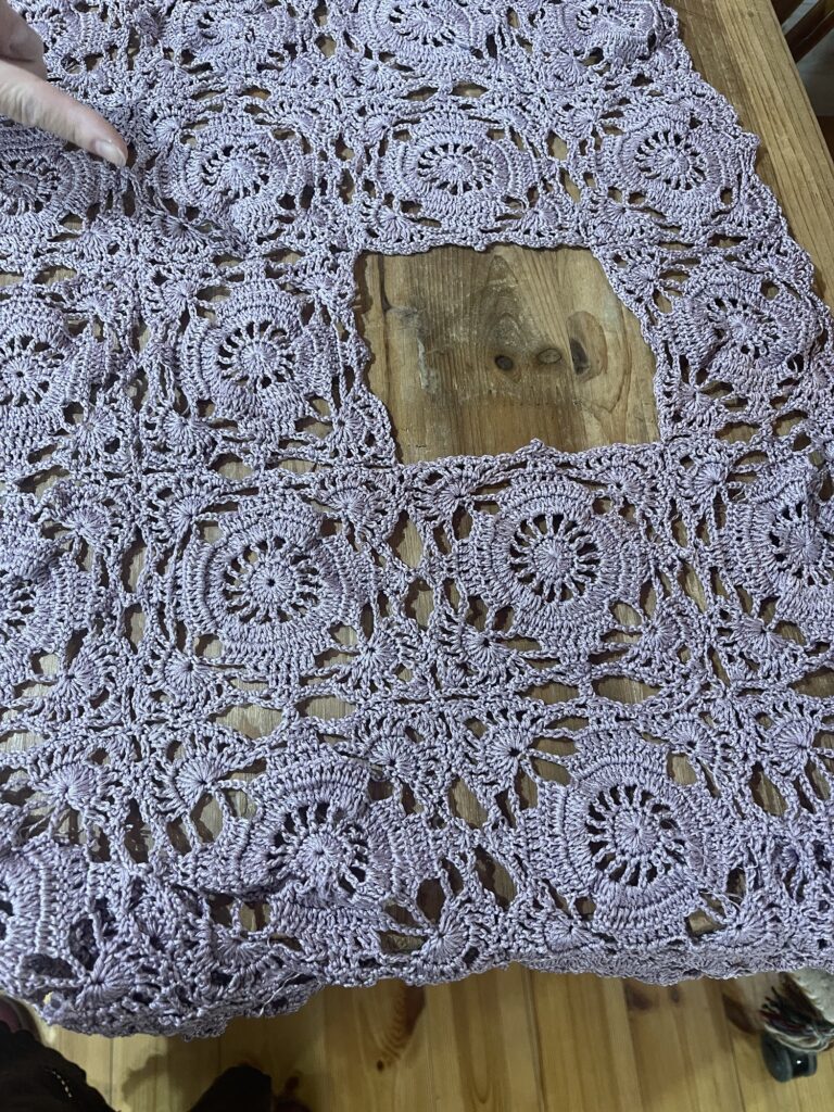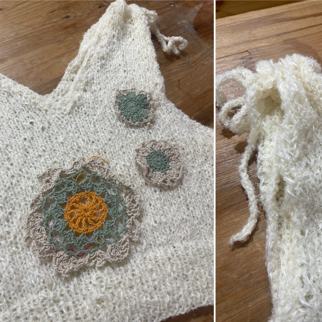 モチーフ編みをつけて少し刺繍を加えたらどうかしら?またやってみましょう。