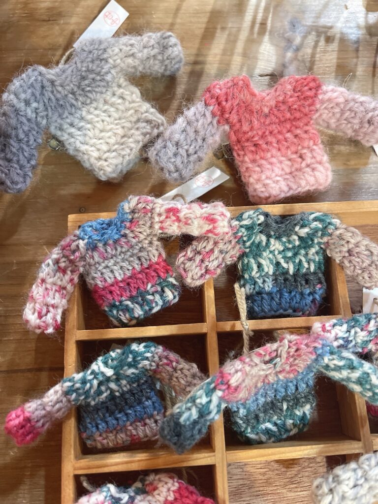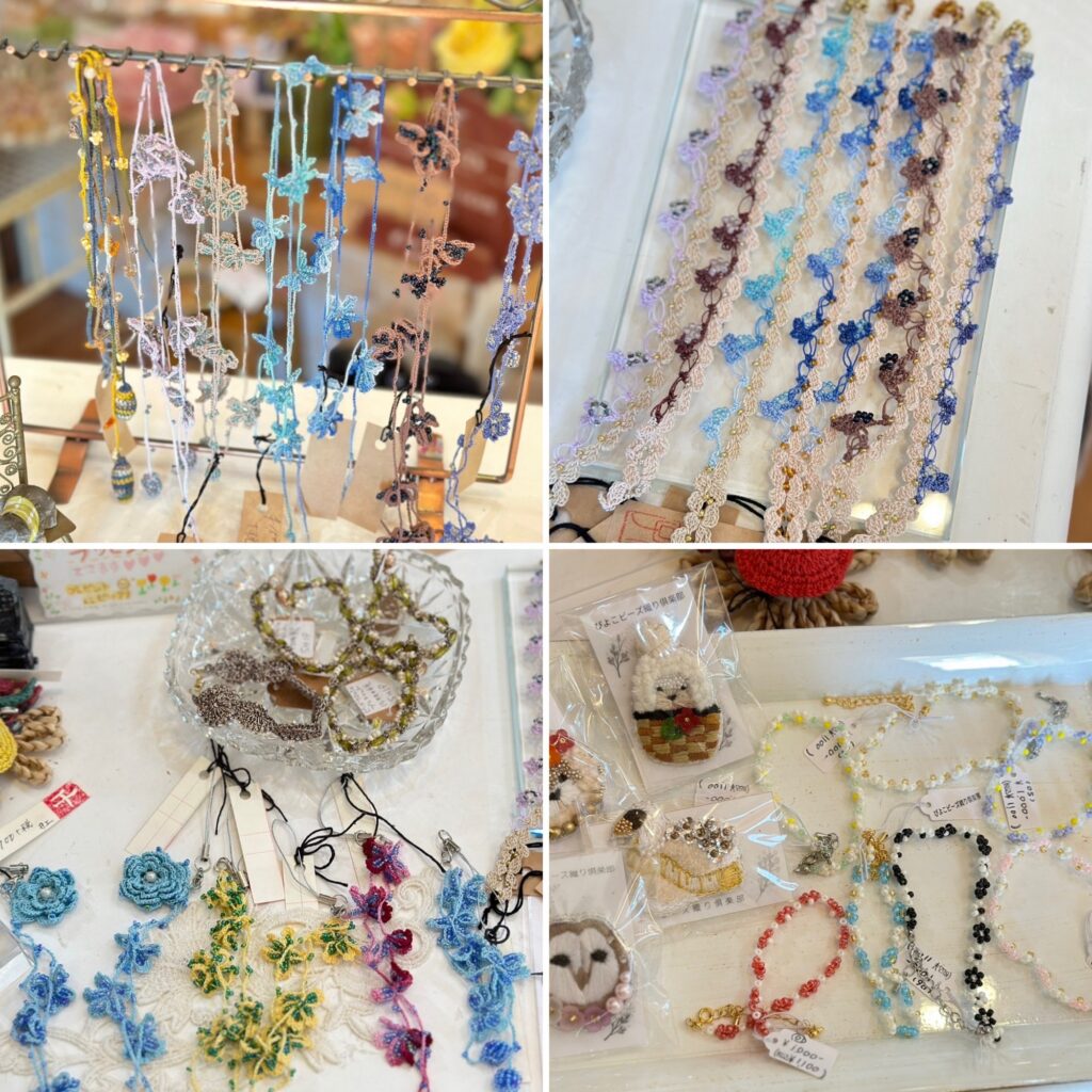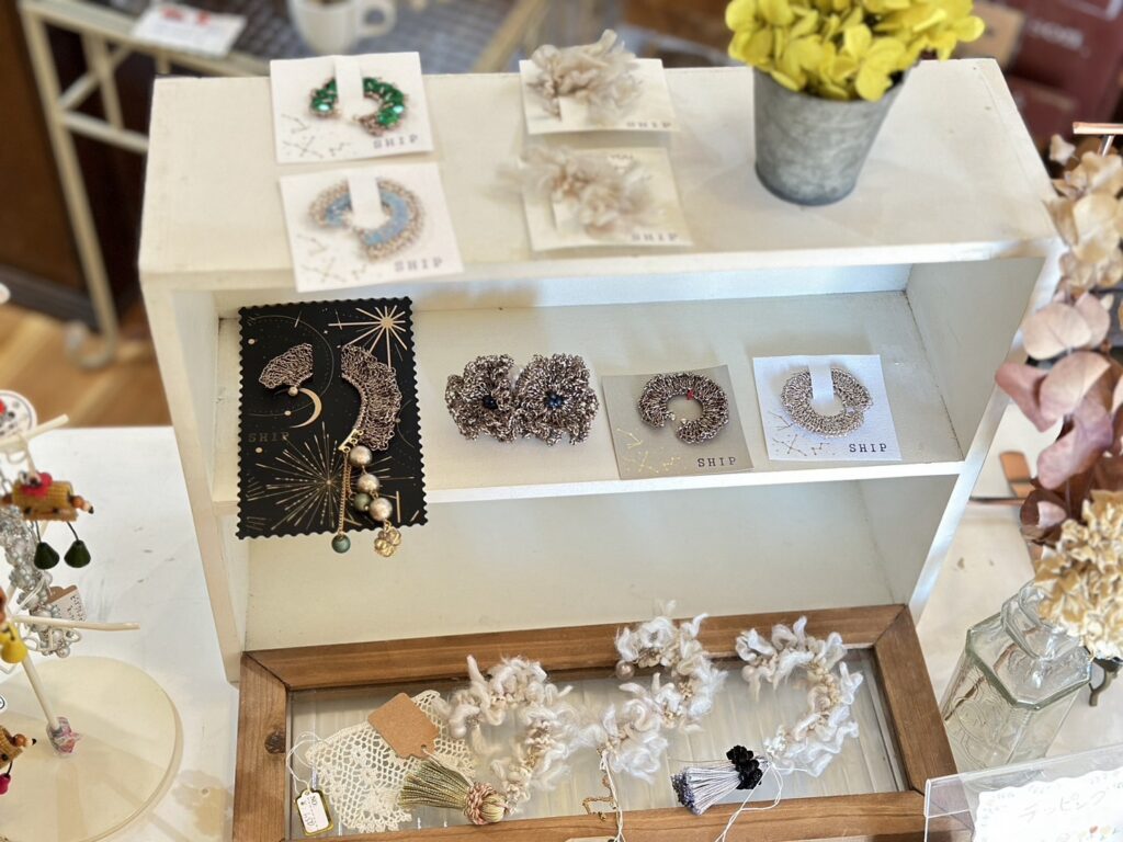 編んだとは思えない、斬新なアクセサリーも。おしゃれですよ〜