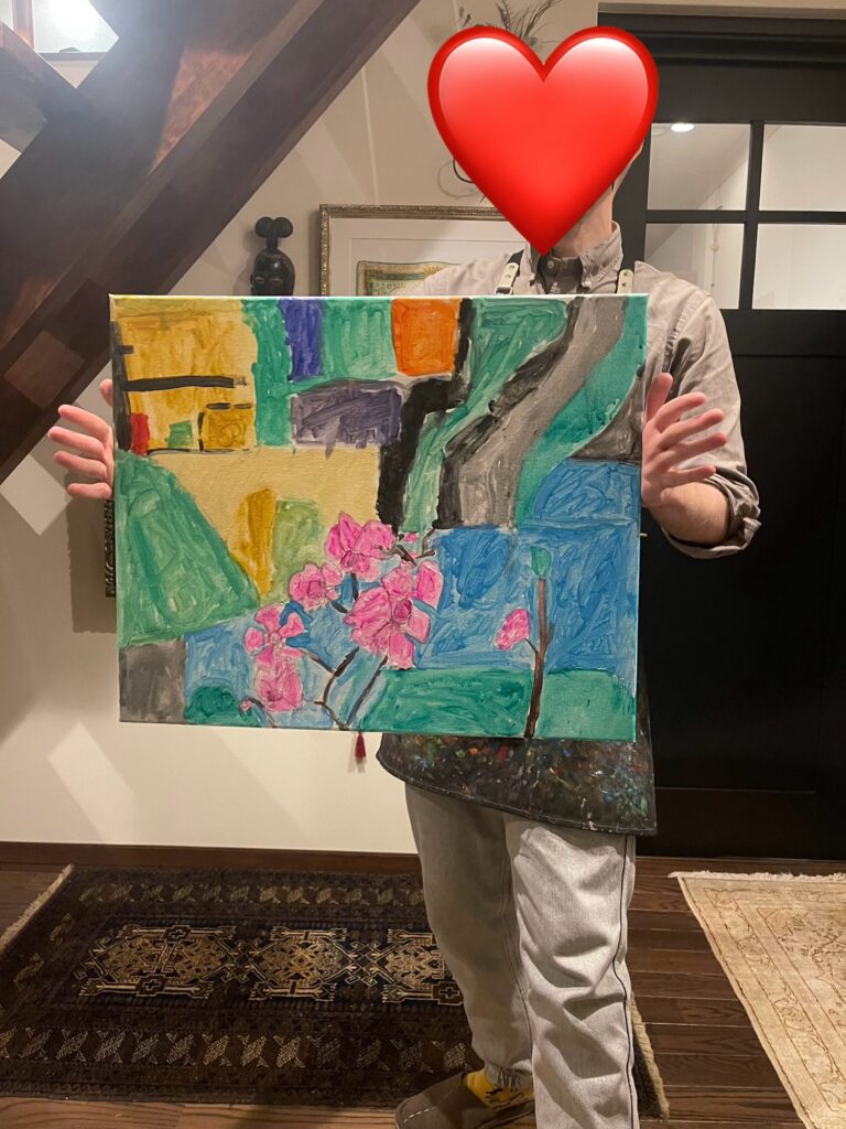 昨日そうたの絵画教室でチャーリー先生からそうたが描いた絵をいただきました。