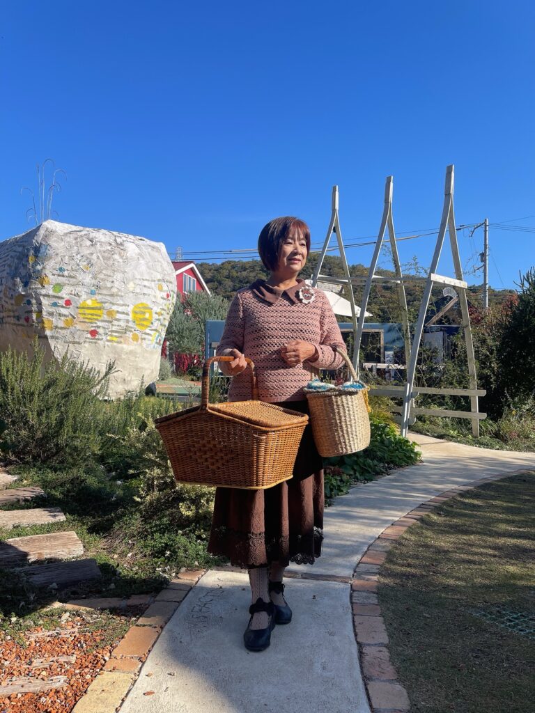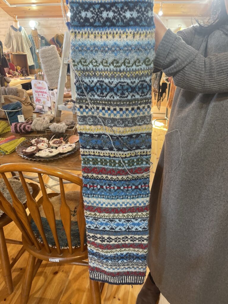 息子さんに素敵なフェアアイルのストールを編んでるメンバーさんも応援に来て下さいました。