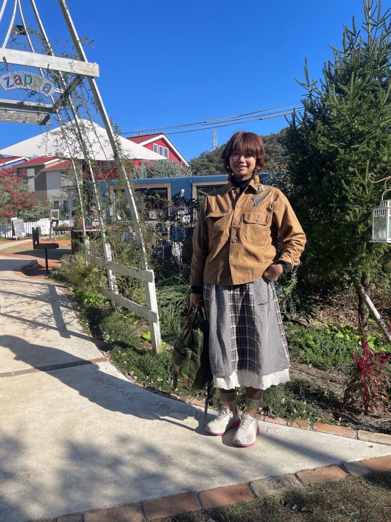 あゆも今日は打ち合わせがいっぱいあるようです。リバーシブルパッチワークスカートとリメイクジャケット。