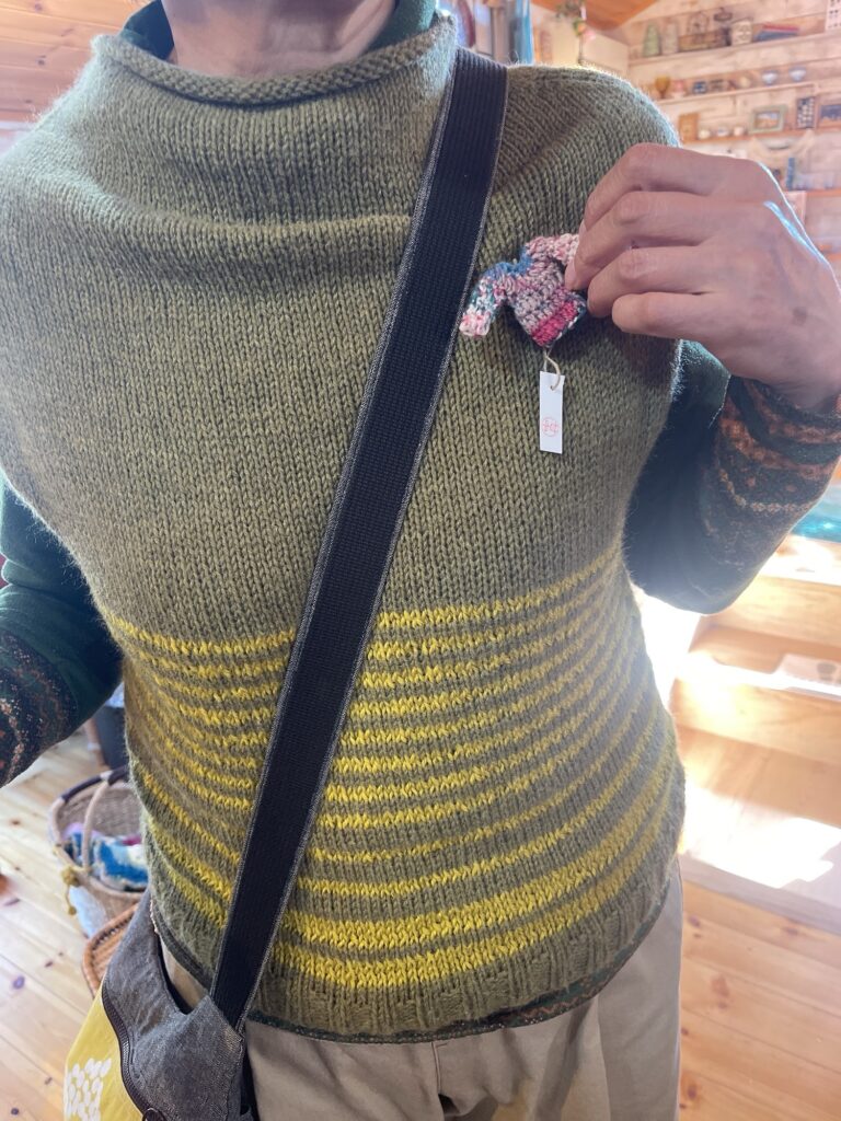 ミニセーターのブローチも人気でお友達にもプレゼントと言ってお買い上げ。