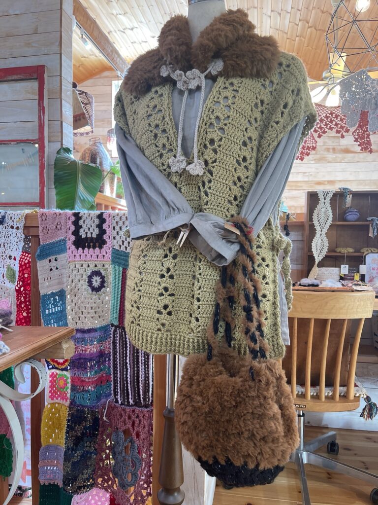 先日ターバンをお買い上げしてくださった方が、今日は編物をしに来て下さいました。