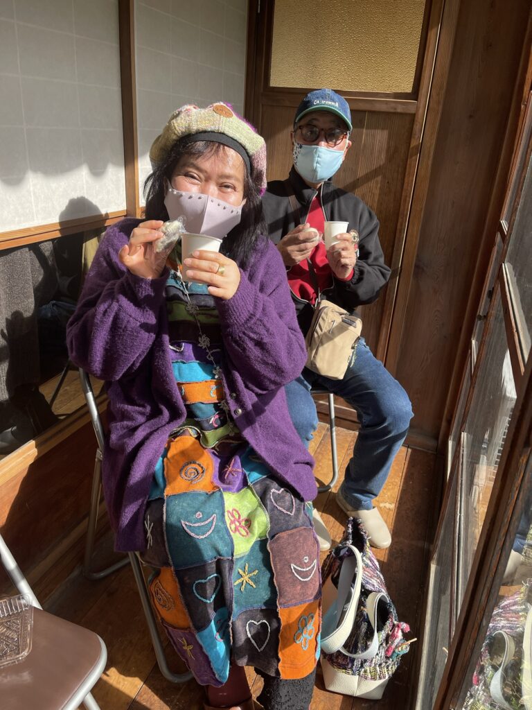 三木露風の生家の向かい側で出店していました。編み編みクラブの販売会の手編みもたくさん持って行きましたよ。