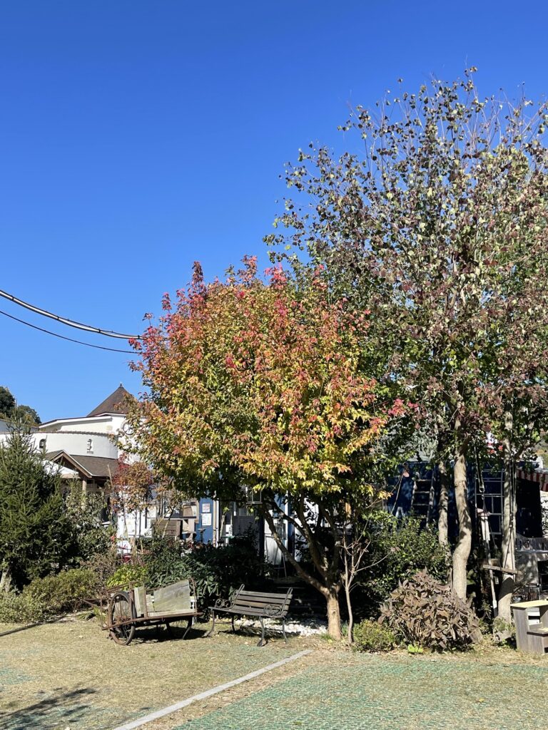 ナンキンハゼや楓の木が秋の色。