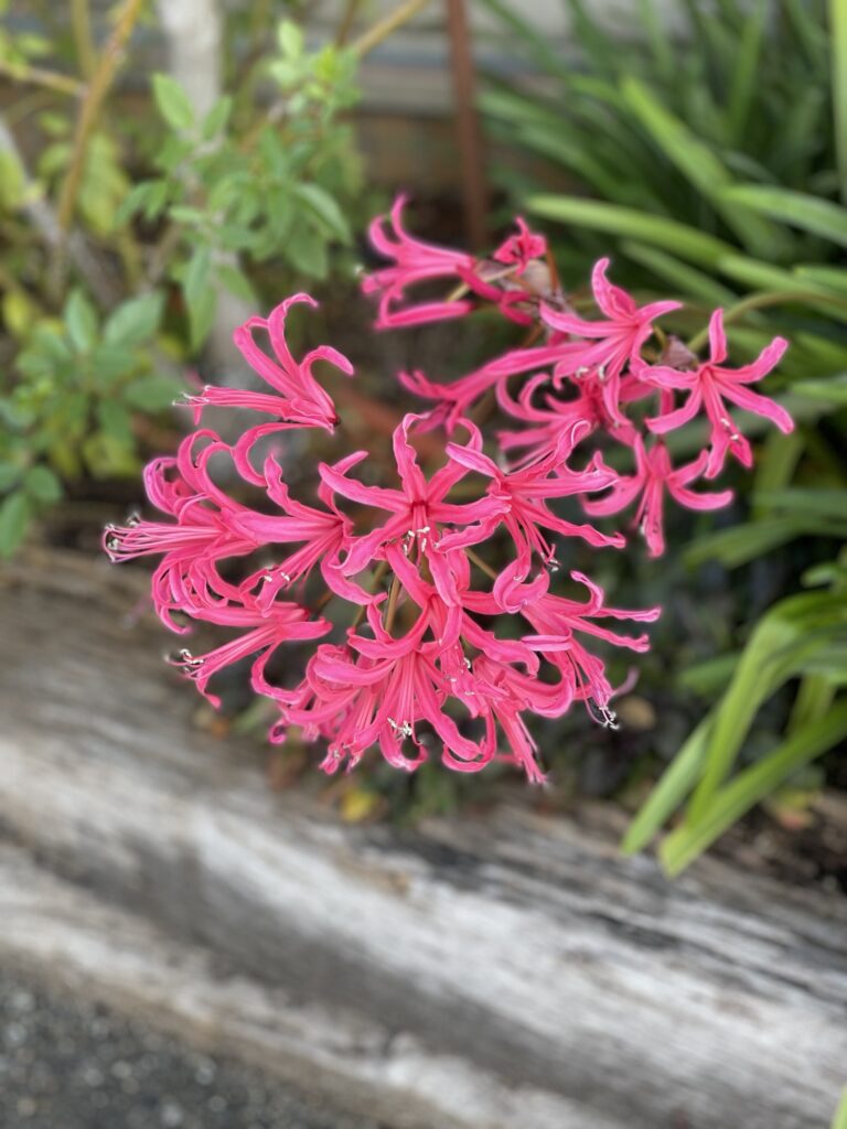 ケーキを買いに行ったら、ケーキ屋さんの軒先に綺麗なピンクのアガパンサスが咲いてました。