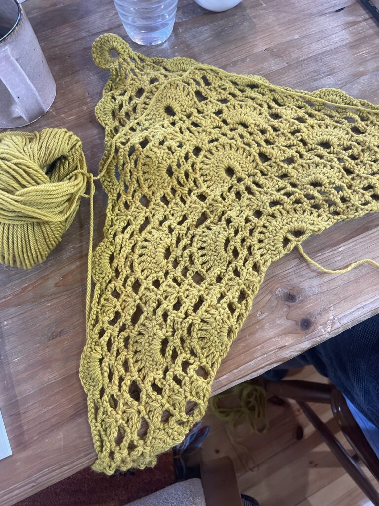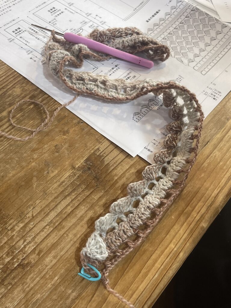 思いがけずいい糸に出会って、素敵なベストができそうです。