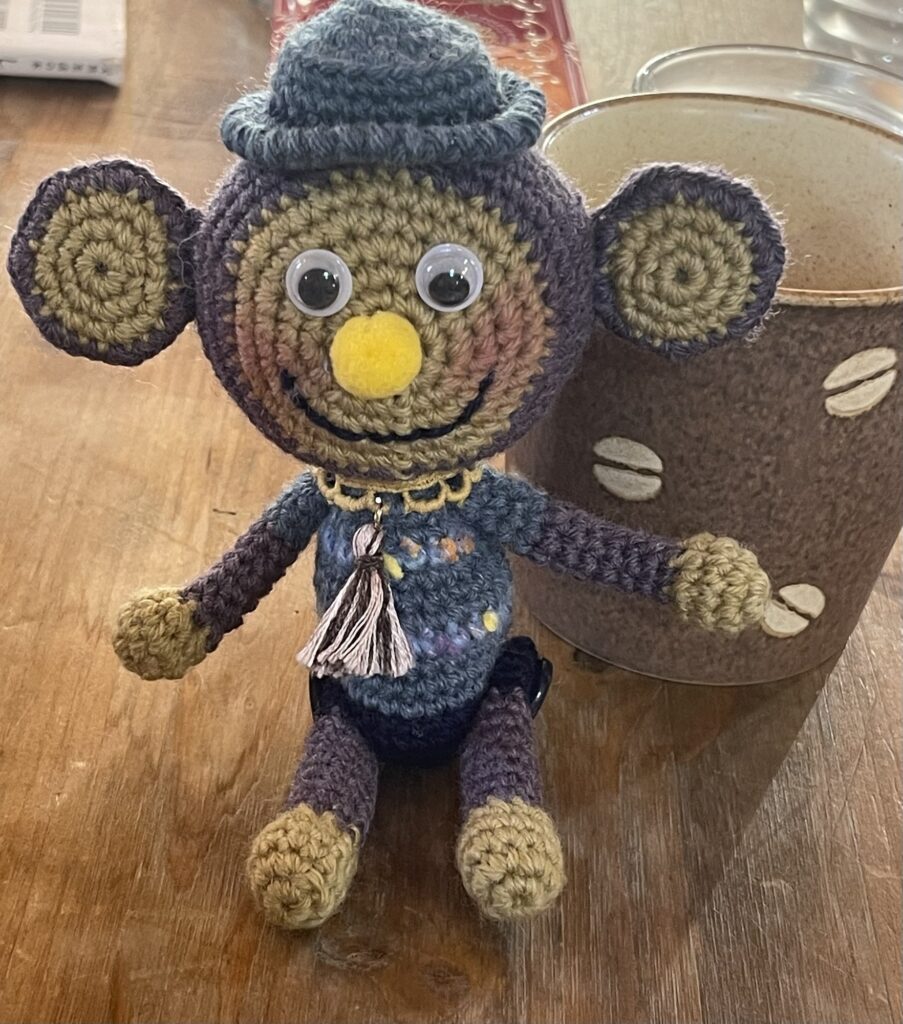 ききみみちゃんのサンプルを作ってきてもらいました。ダイヤエポカの糸でキットを