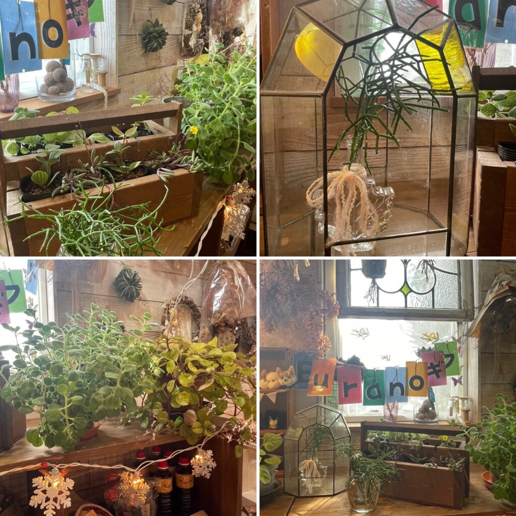 寒くなってきたので霜に弱いスエーデンアイビーやアロマティカスなどのグリーンをブラーノの窓辺に置きました。
