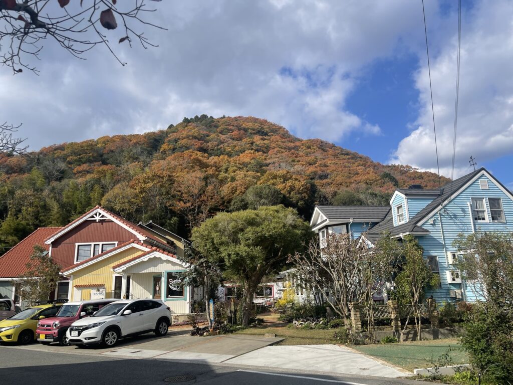 ザッパ村の向こうに見える山が紅葉してきれい。