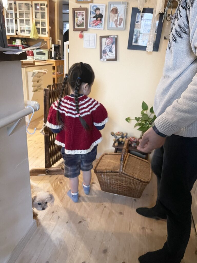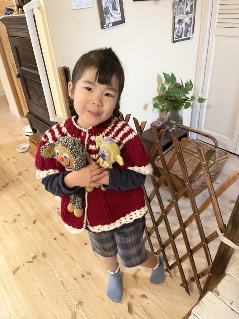 うーちゃんはききみみちゃんがお気に入り。手編みのセーターはオータムフェスティバルの時に、古着で買いました。
