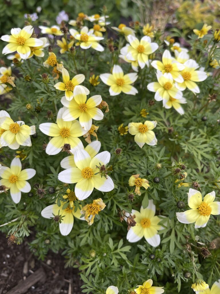 さわやかな黄色。ギザギザの葉っぱもかわいいウインターコスモス