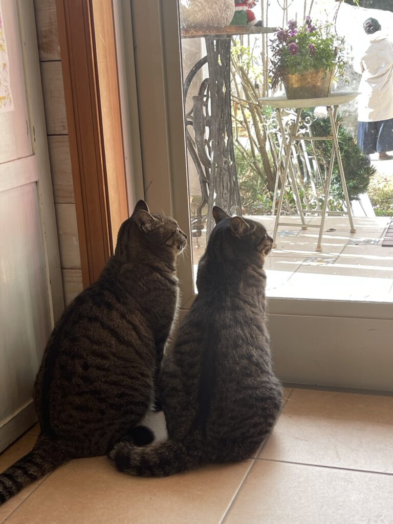 姉妹仲良くブラーノザッパの中から外を眺めてます。てこちゃんも最近太ってますます見分けがつきにくくなったね。