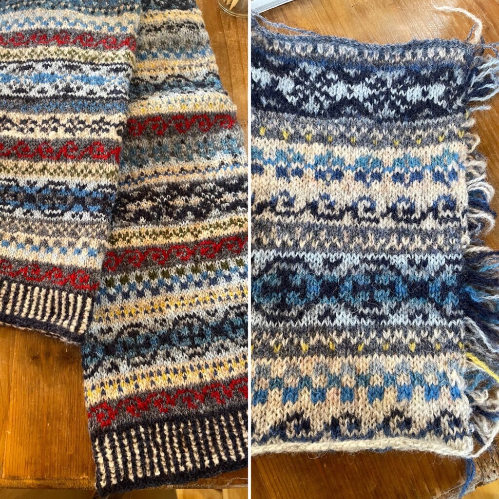 今度は右側のブルーのタイプで、息子さんのセーターを編まれるそうです。