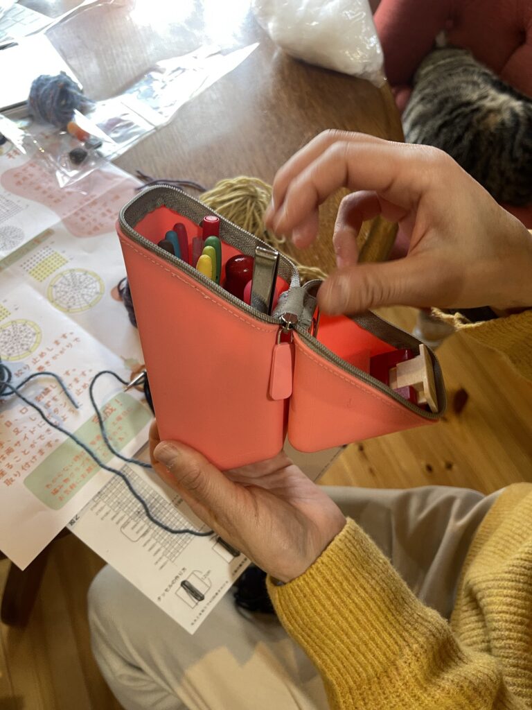 筆箱を編み針などの道具入れに。便利そう。