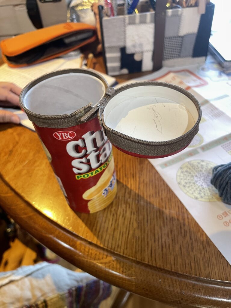 ポテトチップスの箱もチャックを付けると立派な入れ物に。アイデアが素晴らしい。