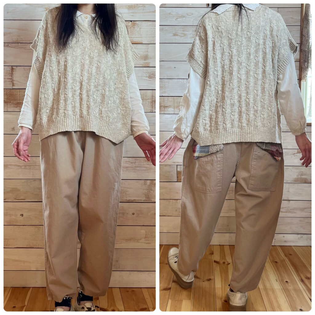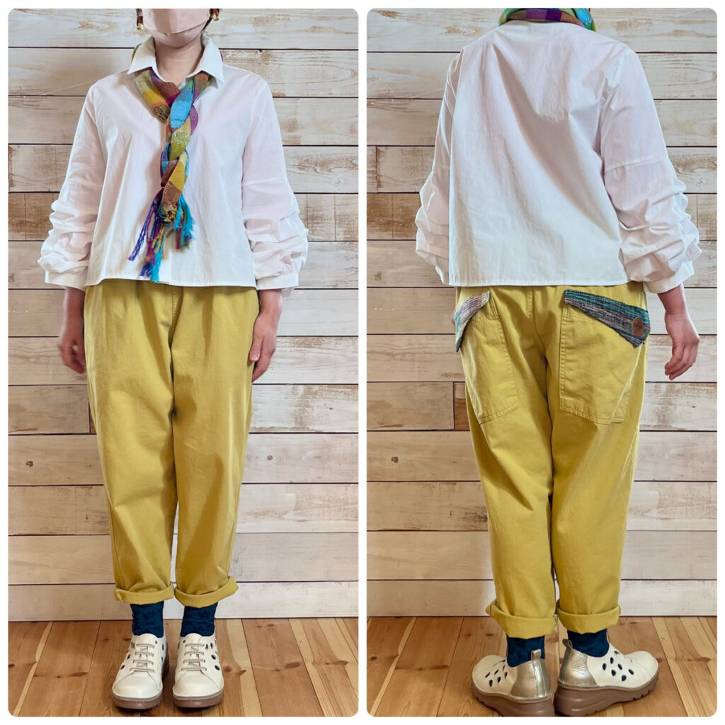 さをりフラップのサルエルパンツ 本体カラーは4色 スタッフえり149cm スタッフつり155cm スタッフゆみこ156cm スタッフあゆみ158cm スタッフみかこ155cm 戻る 投稿日:2024.05.09